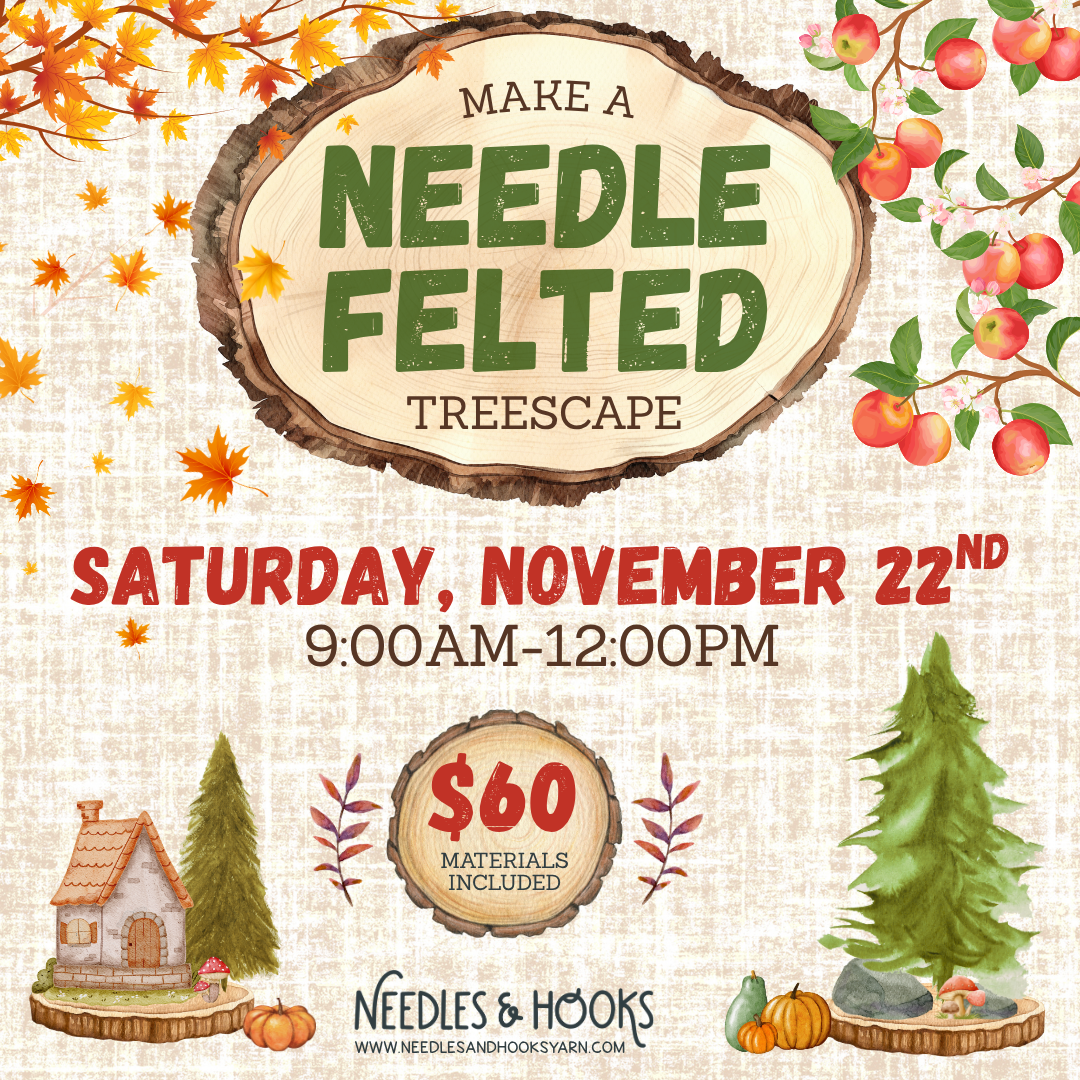 Join our favorite needle felting guru, Tammy, and learn to make a treescape! What's a treescape, you ask? Think of a little forest scene with a tree or two, maybe a little cottage, tiny mushrooms, the possibilities are endless.